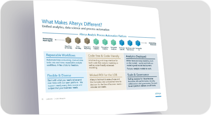 Confidential 2021 Alteryx, Inc. 15 What Makes Alteryx Different? Unified analytics, data science and process automation Data Prep & Profiling Data Blending Prescriptive Analytics No & Low code Data Science Diagnostic Reporting Predictive Analytics Predictive AutoML Alteryx A nalytic P rocess A utomation Platform Geospatial Analytics Explainable AI Automating Asset Inputs Automating Outcomes Repeatable Workflows Analytics Deployed While there are many modeling tools on the market we do both kick-ass modeling and model deployment. Put your analytic models to work. Automate time-consuming, manual data tasks into real-time, repeatable analytic workflows. A few clicks to freedom. Code-free & Code-friendly Intuitive drag and drop interface for both code-free analytic modeling as well as code-friendly advanced modeling. Flexible & Diverse Scale & Governance Scaling analytics for the enterprise translates into performance, security, collaboration and governance. Our end- to-end platform delivers on all fronts. Start with what you need and expand over time with our open platform. We support nearly every data source and output that your business needs. Wicked ROI for the LOB Alteryxs hallmark is ease-of-use and this translates into unmatched time-to- decision for the line of business teams - minutes not weeks.