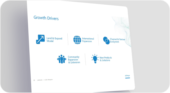 Confidential 2021 Alteryx, Inc. 23 Growth Drivers Land & Expand Model International Expansion Channel & Partner EcoSystem Community Expansion & Extension New Products & Solutions
