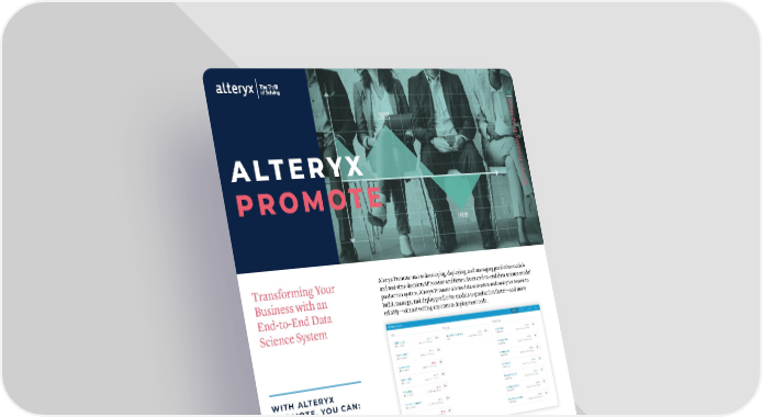 1 | t ta Shee a e D omot ALTERYX r eryx P t PROMOTE Al Transforming Your Alteryx Promote makes developing, deploying, and managing predictive models and real-time decision APIs easier and faster. As an end-to-end data science model Business with an production system, Alteryx Promote allows data scientists and analytics teams to build, manage, and deploy predictive models to production faster—and more End-to-End Data reliably—without writing any custom deployment code. Science System WITH ALTERYX PROMOTE, YOU CAN: • Empower data science and analytics teams to easily deploy predictive models into production • Evaluate and test models to ensure they deliver the most impact to your business Easily Deploy Predictive Models into • Quickly understand the effectiveness of Production Systems your production models With Alteryx Promote, you can deploy your predictive analytic models quickly— without recoding or tweaking. Because Alteryx Promote lets you deploy directly from the Alteryx Designer code-free environment or expose R and Python models via standard REST API requests, instead of recoding the models from within their native languages, integration of your most advanced analytic models into production systems is simple—and painless. That means you can embed machine-learning models in any web or mobile application capable of making REST API requests, increasing the power of your production apps. What’s more, you can execute real-time predictions in low- latency applications or use batch mode for bulk offline scoring. VISIT ALTERYX.COM DATA SHEET